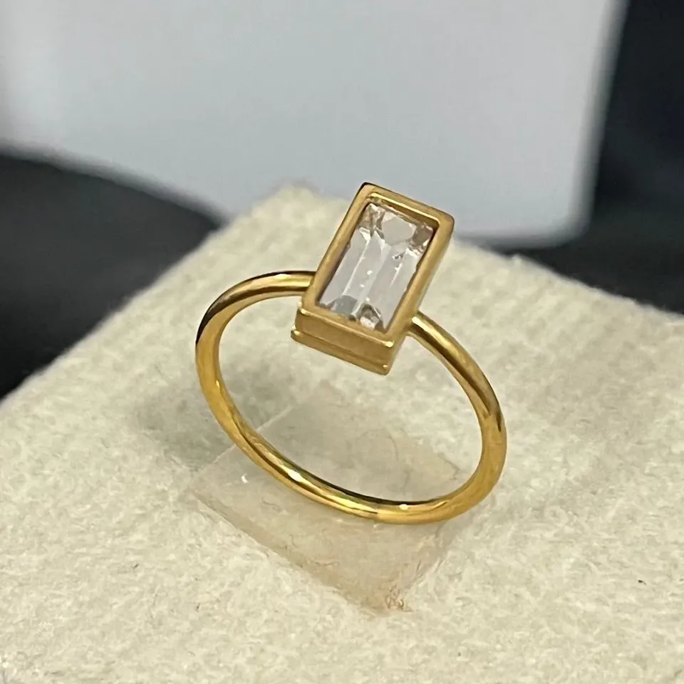 Anel com pedra no aço douradoConfira opiniões e avaliações de clientes!