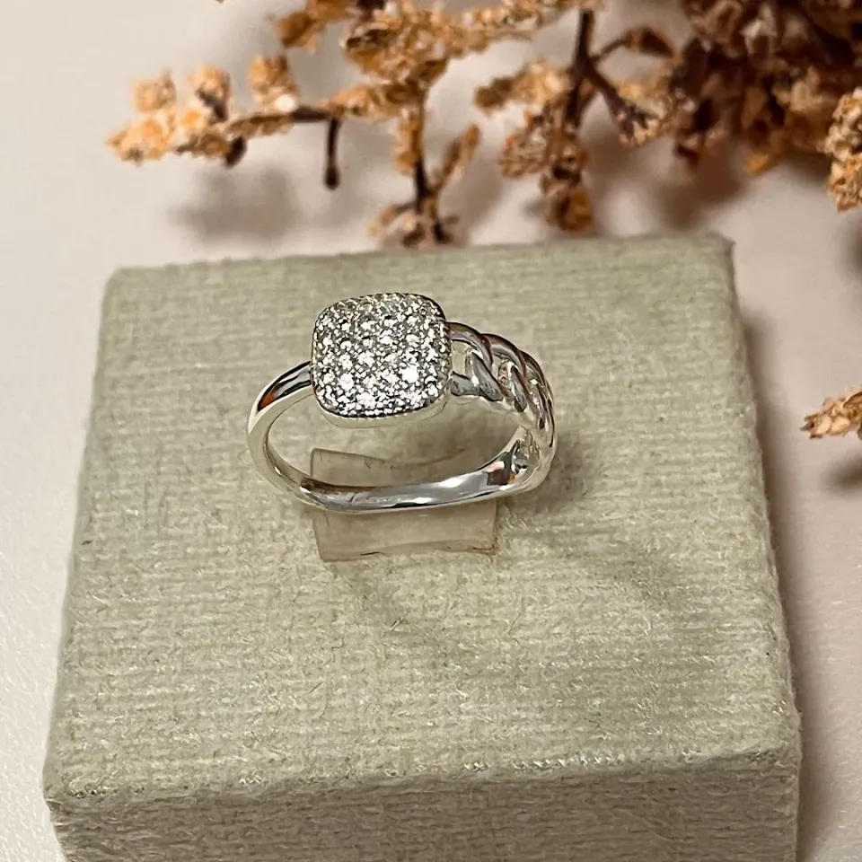 Anel com pedras cravejadas quadradasConfira opiniões e avaliações de clientes!