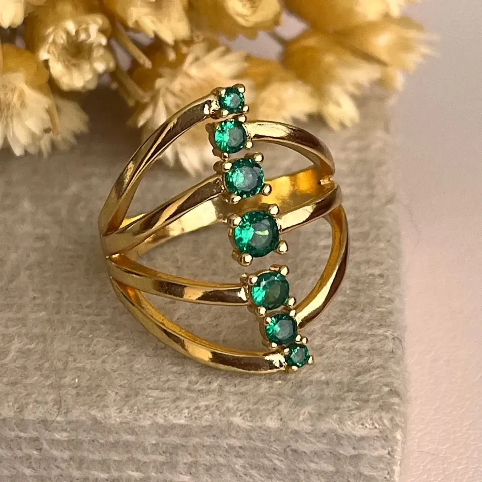 Anel dourado com pedra verdeConfira opiniões e avaliações de clientes!