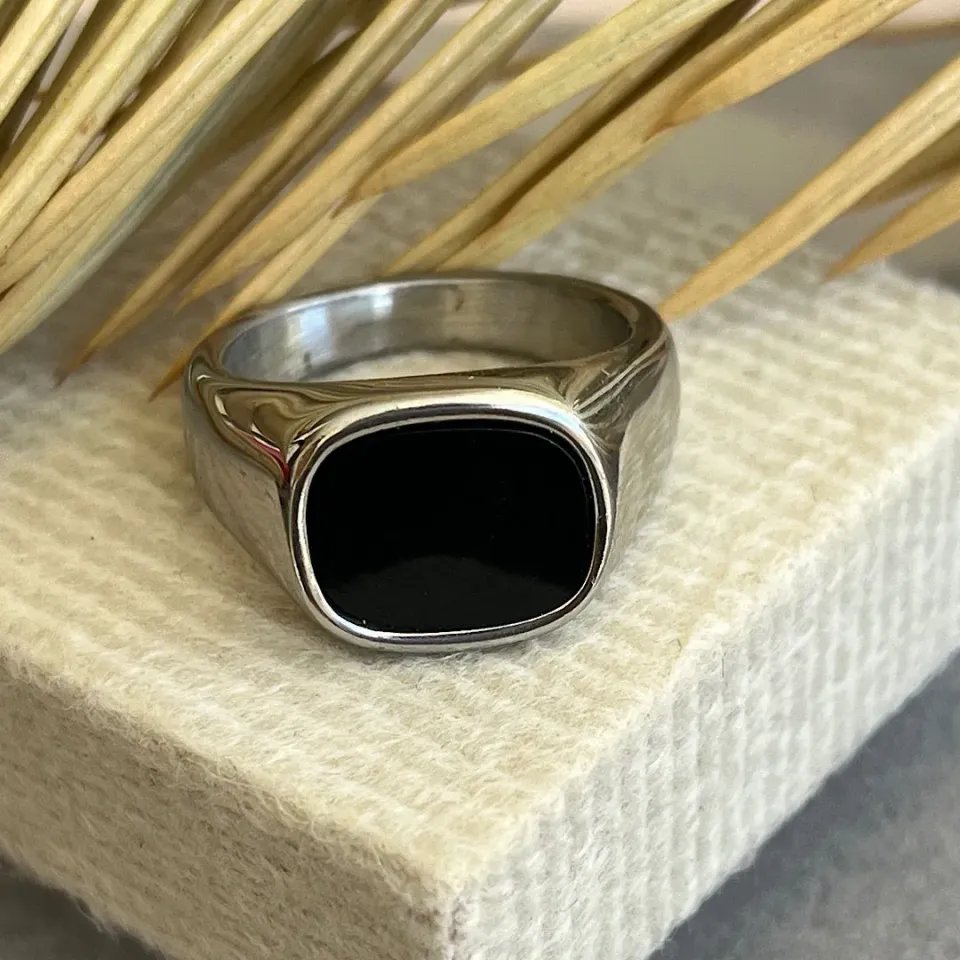 Anel em aço com pedra pretaConfira opiniões e avaliações de clientes!