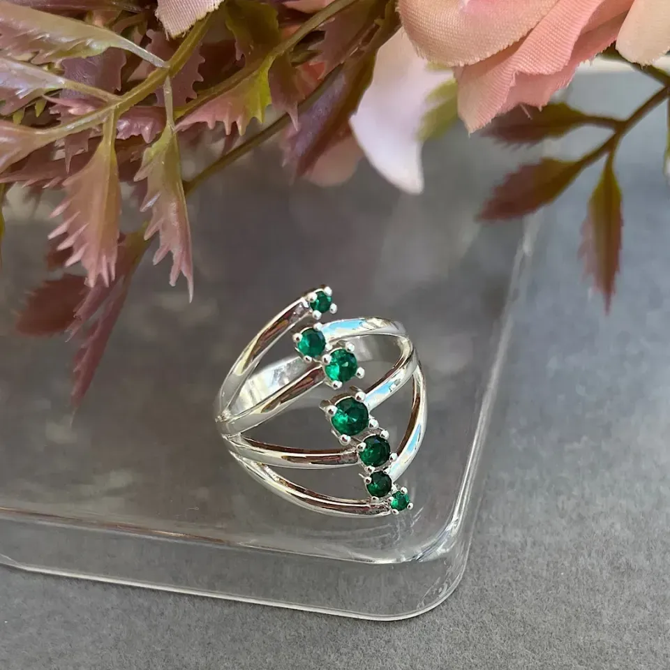 Anel prata com pedras verdesConfira opiniões e avaliações de clientes!