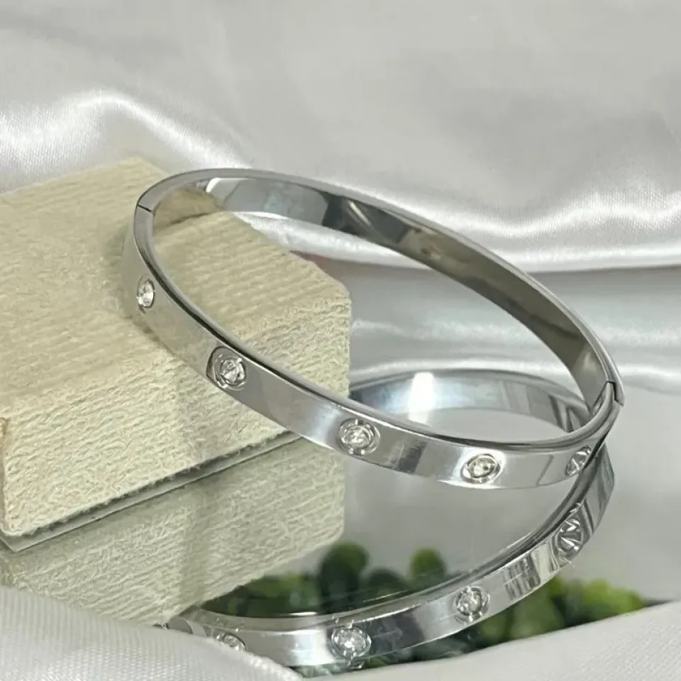 Bracelete de aço com pedras cravejadasConfira opiniões e avaliações de clientes!