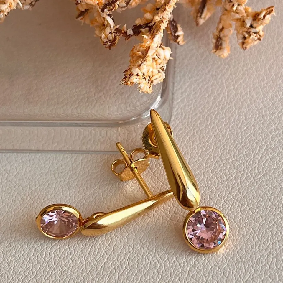 Brinco dourado com pedra rosaConfira opiniões e avaliações de clientes!