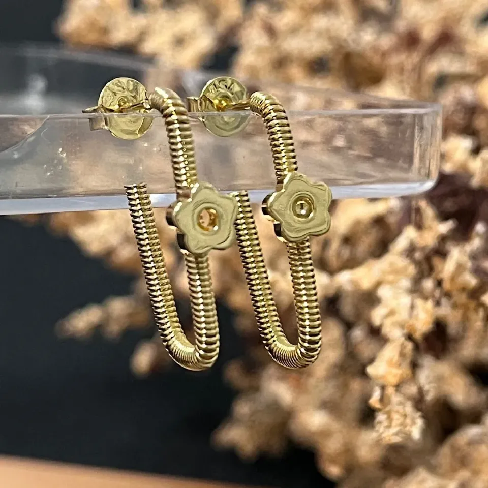 Brinco formato fio com flor delicadaConfira opiniões e avaliações de clientes!