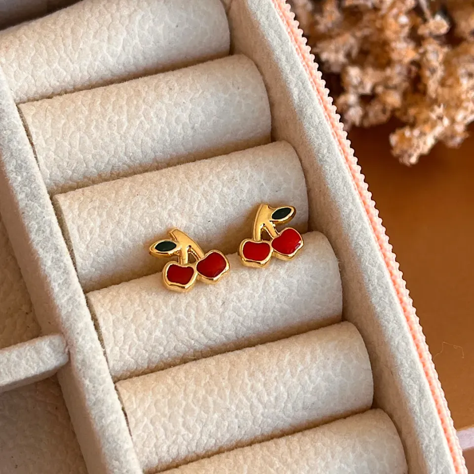 Brinco infantil dourado de cerejasConfira opiniões e avaliações de clientes!
