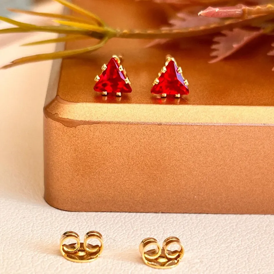 Brinco pedra triângulo vermelhaConfira opiniões e avaliações de clientes!