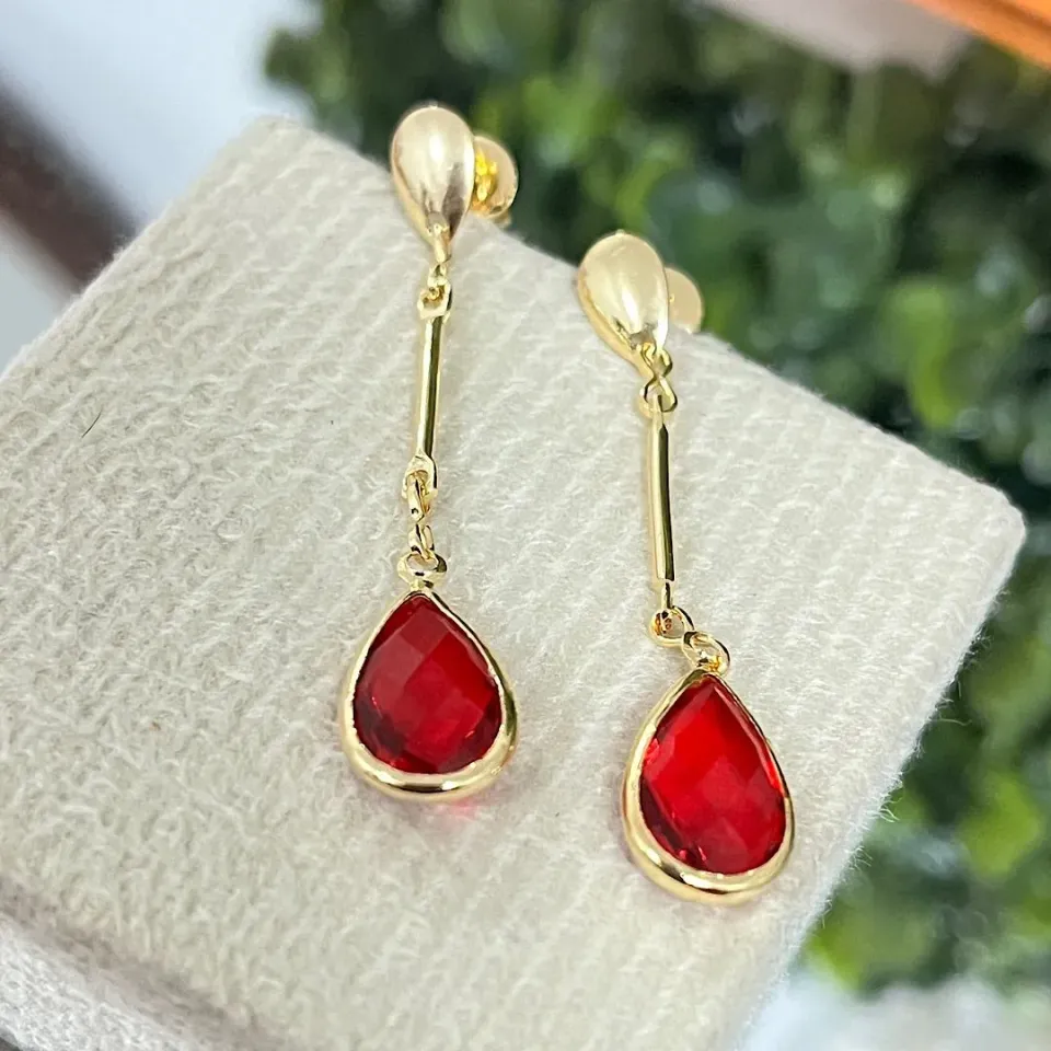 Brinco pêndulo com pedra vermelhaConfira opiniões e avaliações de clientes!