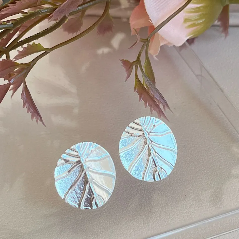 Brinco redondo com detalhes de folhasConfira opiniões e avaliações de clientes!