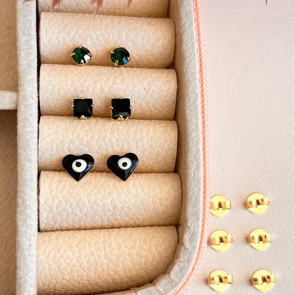 Brinco trio olho grego e pedrasConfira opiniões e avaliações de clientes!