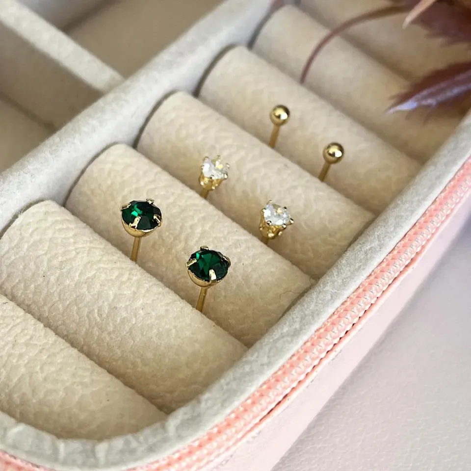 Brinco trio pedra verde, cristal e bolinhaConfira opiniões e avaliações de clientes!