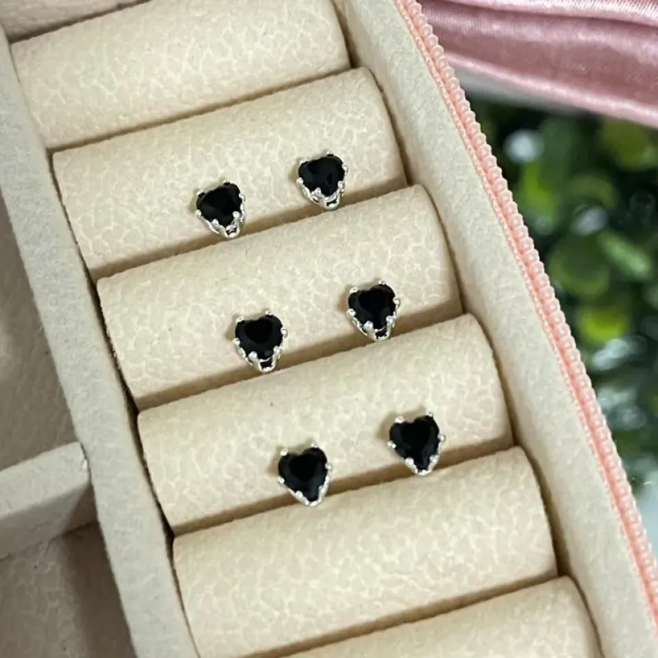 Brincos coração pedra pretaConfira opiniões e avaliações de clientes!