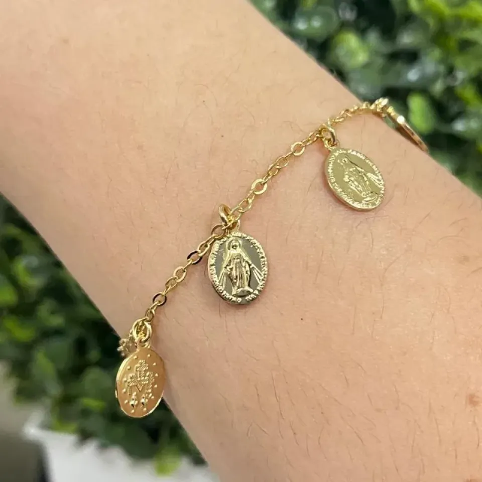 Pulseira Alinhados com medalhas religiosaConfira opiniões e avaliações de clientes!