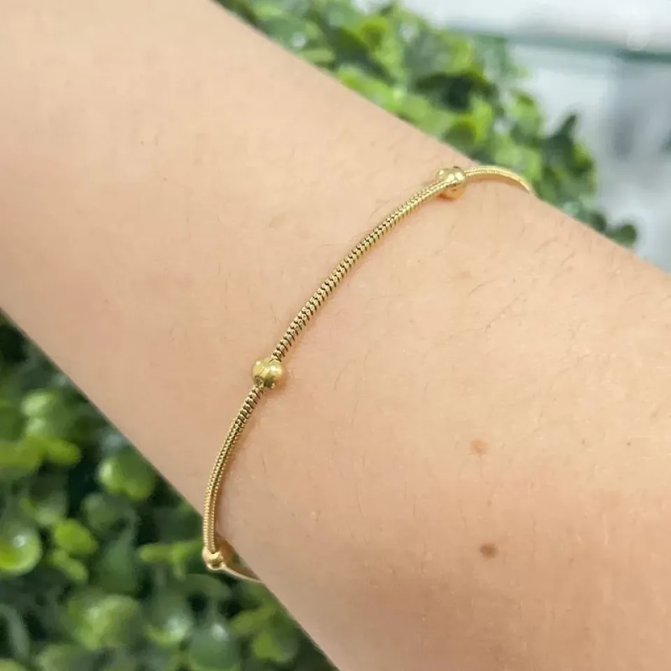 Pulseira com esferas no aço douradoConfira opiniões e avaliações de clientes!