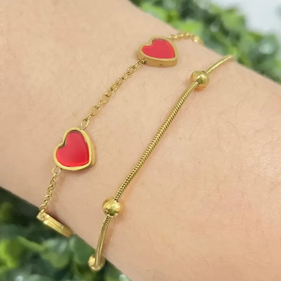 Pulseira dupla com pingente vermelhaConfira opiniões e avaliações de clientes!
