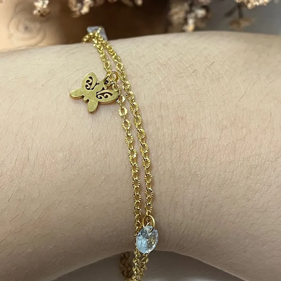 Pulseira Dupla em aço com pingente borboletaConfira opiniões e avaliações de clientes!