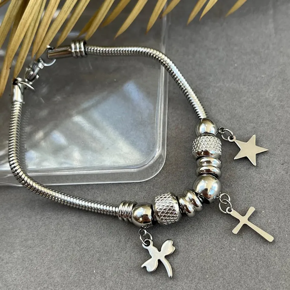 Pulseira em aço bracelete com berloquesConfira opiniões e avaliações de clientes!
