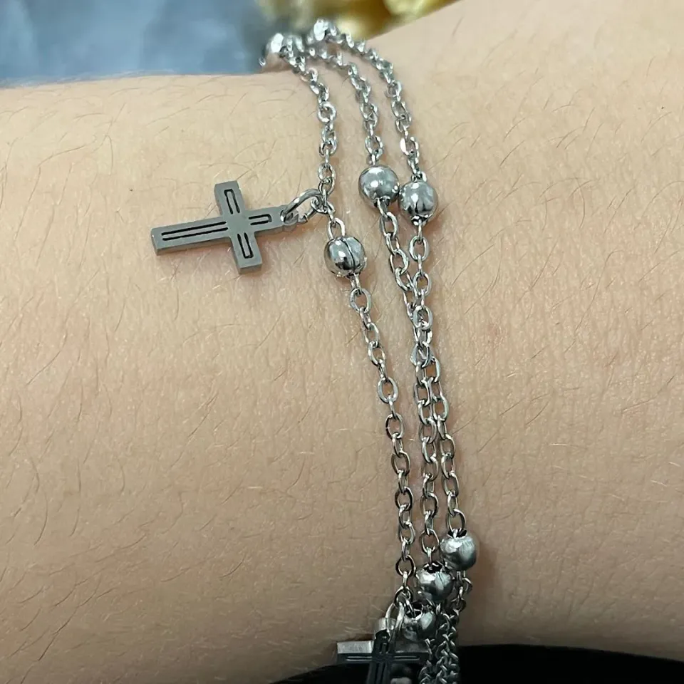 Pulseira três voltas com cruz no açoConfira opiniões e avaliações de clientes!