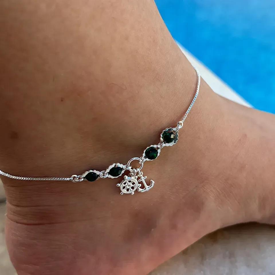 Tornozeleira âncora com pedra esmeraldaConfira opiniões e avaliações de clientes!