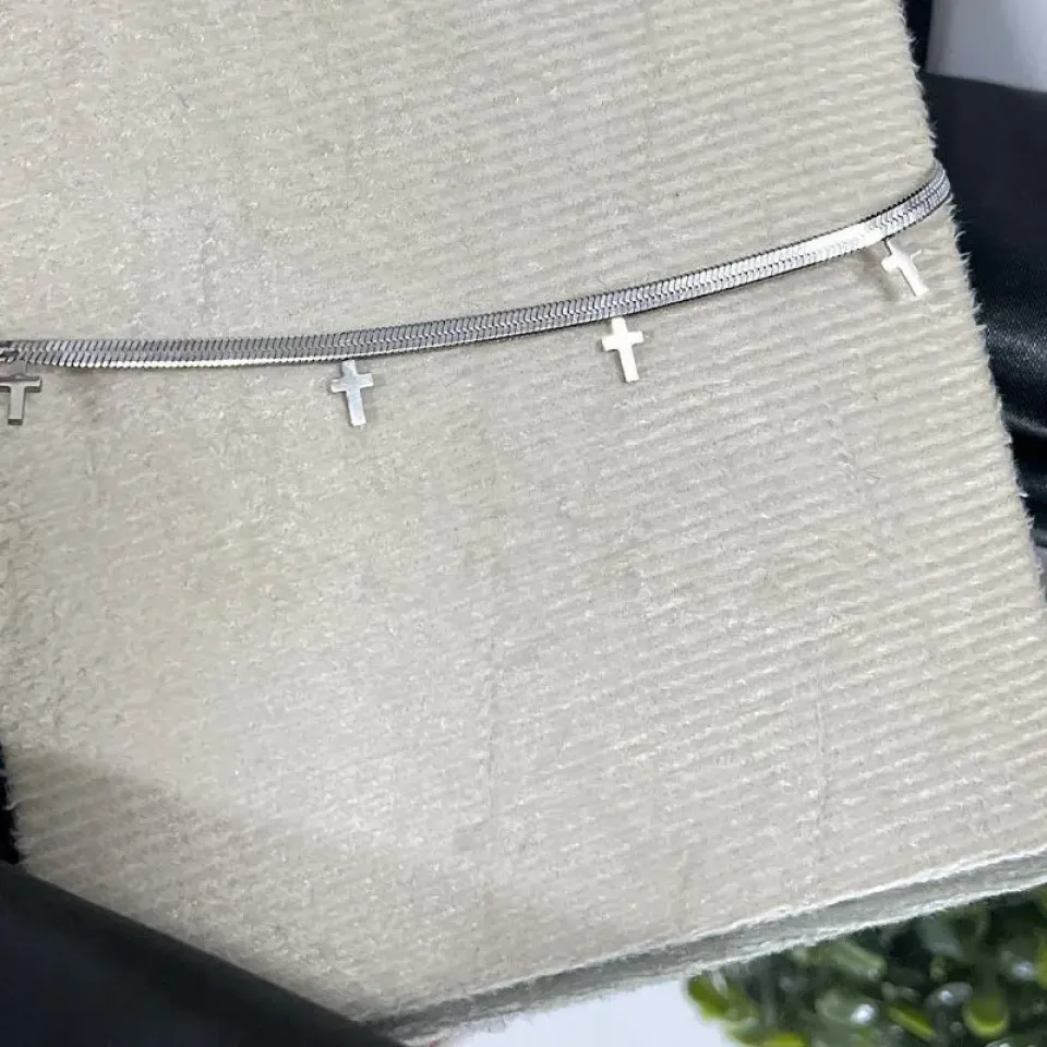 Tornozeleira de aço com pingente cruzConfira opiniões e avaliações de clientes!